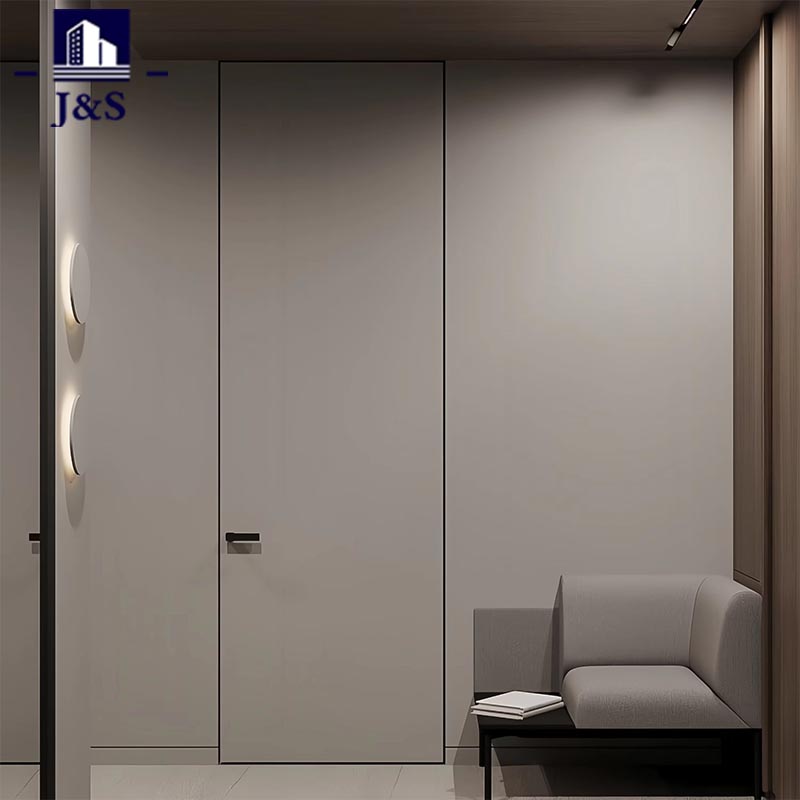 Αυτές οι εσωτερικές κρυφές πόρτες κρεβατοκάμαρας ενσωματώνουν την ουσία της προσαρμοσμένης σχεδίασης ολόκληρου του σπιτιού, που ευθυγραμμίζεται τέλεια με τη μοντέρνα αισθητική που προτιμούν οι νέοι. Ενσωματωμένες άψογα στον τοίχο, οι πόρτες εξαλείφουν τα παραδοσιακά κουφώματα και τις ογκώδεις άκρες των θυρών, δημιουργώντας μια καθαρή, αδιάκοπη οπτική ροή που θολώνει τη γραμμή μεταξύ πόρτας και τοίχου. Οι λείες επιφάνειες σε ουδέτερους τόνους και οι κομψές μεταλλικές λαβές συμπληρώνουν τα μινιμαλιστικά έπιπλα και τον απαλό ατμοσφαιρικό φωτισμό, αντανακλώντας έναν ήρεμο, εκλεπτυσμένο τρόπο ζωής. Αυτός ο σχεδιασμός δίνει προτεραιότητα στη χωρική συνοχή και τη συγκρατημένη κομψότητα, καθιστώντας το κορυφαία επιλογή για νέους ιδιοκτήτες σπιτιού που εκτιμούν την απλότητα, τη λειτουργικότητα και ένα συνεκτικό περιβάλλον διαβίωσης χωρίς ακαταστασία. Μετατρέπει τις συνηθισμένες πόρτες σε διακριτικά, κομψά στοιχεία που ενισχύουν τη συνολική αίσθηση του χώρου και του μοντέρνου.