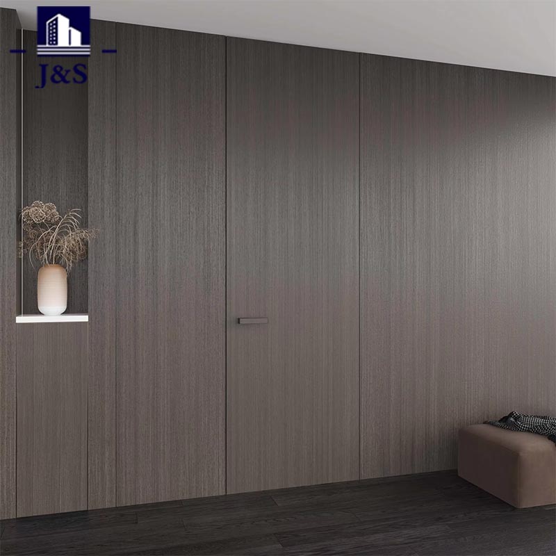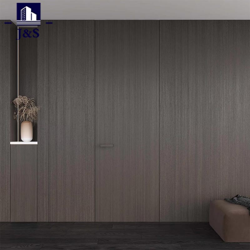 Αυτό το σετ Προσαρμοσμένης Κρυφής Πόρτας Ολόκληρων Σπιτιών παρουσιάζει ένα premium προσαρμοσμένο σχέδιο για ολόκληρο το σπίτι, που συνδυάζεται άψογα με τον σύγχρονο χώρο διαβίωσης. Οι πόρτες διαθέτουν ένα εκλεπτυσμένο φινίρισμα από σκούρο ξύλο που εναρμονίζεται τέλεια με το σκούρο δάπεδο και τις μινιμαλιστικές πινελιές των τοίχων, αναδεικνύοντας τη συνολική αισθητική με διακριτική πολυτέλεια. Το αποκορύφωμα βρίσκεται στο εξαιρετικό υλικό του: το κομψό, γεωμετρικό χερούλι της πόρτας διαθέτει μαύρη ματ υφή με ακριβείς λεπτομέρειες, προσφέροντας άνετο κράτημα και μια νότα βιομηχανικής κομψότητας. Εν τω μεταξύ, ο κρυφός μεντεσές βαρέως τύπου εξασφαλίζει εξαιρετικά ομαλή λειτουργία ενώ παραμένει εντελώς κρυφός, ενσωματώνοντας τόσο την ανθεκτικότητα όσο και τη μινιμαλιστική εφευρετικότητα. Προσαρμοσμένο για νέους ιδιοκτήτες σπιτιού που επιδιώκουν ένα συνδυασμό στυλ και λειτουργικότητας, αυτό το σχέδιο εξαλείφει τα αποφρακτικά κουφώματα των θυρών, δημιουργώντας ένα ανοιχτό, ακατάστατο περιβάλλον. Είναι η απόλυτη επιλογή για μοντέρνα διαμερίσματα, που συνδυάζει την απρόσκοπτη οπτική ενοποίηση με την υψηλής ποιότητας δεξιοτεχνία για να επαναπροσδιορίσει τη σύγχρονη ζωή.